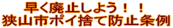 ポイ捨て防止条例のいらないクリーンな狭山市にしよう。